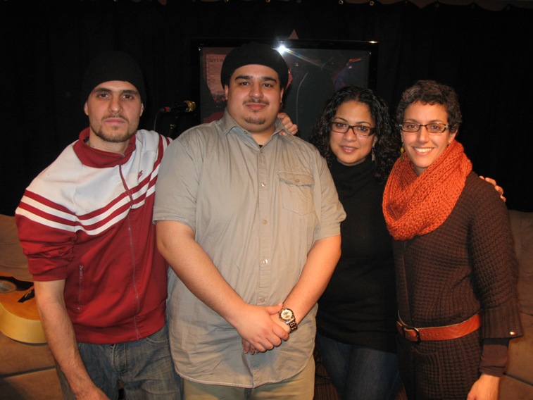 La mort, oui ! Nous disons la mort mais pas la honte. J’espère que la révolte des tunisiens deviendra une révolution véritable qui parviendra jusqu’en Arabie Saoudite (là ou le dictateur s’est réfugié). Il faut que les paroles de nos poètes prennent tout leur sens. Merci d’être venu partager avec nous votre joie et votre espoir. 12- Bonjour Sonia, Bochra et Karim, je m’appelle Christian, en tant que Congolais, je ne peux espérer qu’une chose, que le vent de la révolution tunisienne parvienne aussi à mon pays. Que votre révolte devient contagieuse. Maintenant, si vous permettez, je vais invitez Karim et Kattam de passer de la parole à la musique pour célébrer cette victoire, à vous de jouer et à nous de vous applaudir.. 13- Sonia, Bochra et Karim. Au moment où on se parle Le peuple tunisien est en train de faire de sa révolte une révolution. Les tunisiens sont en train de vivre pleinement les mots de ce beau poème de Chabbi, devenu l’hymne national de la Tunisie : Lorsqu’un jour le peuple veut vivre,